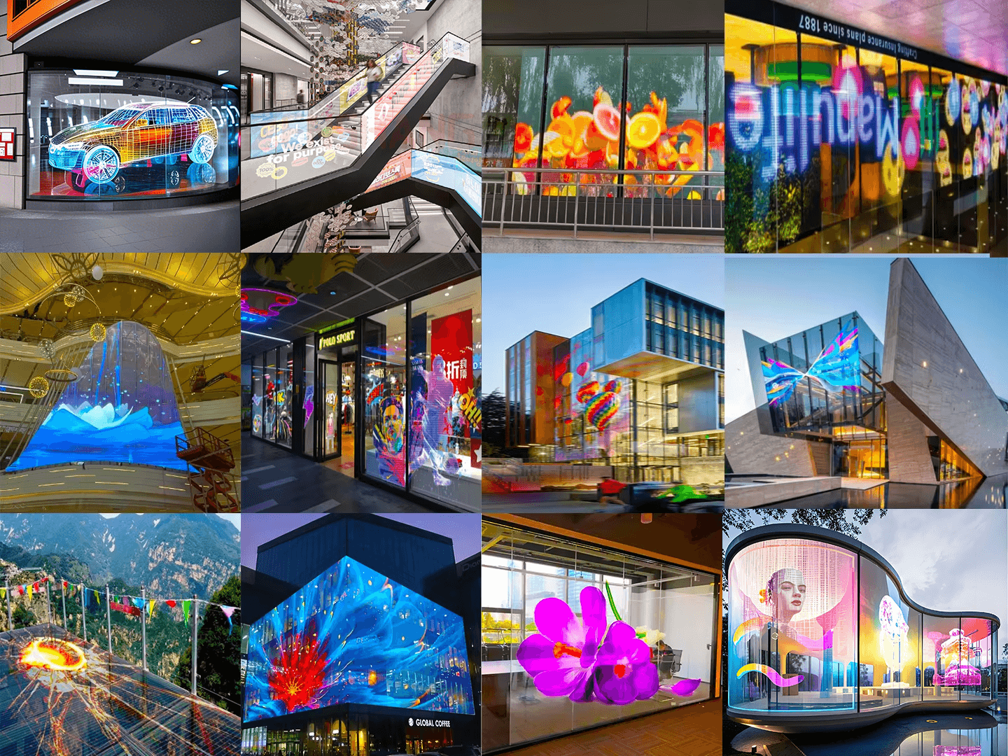 ●A winkelketen in Afrikainstalleerde transparante LED-folies op meerdere winkelpuien, wat voor dynamische beelden zorgde en tegelijkertijd daglicht behield.